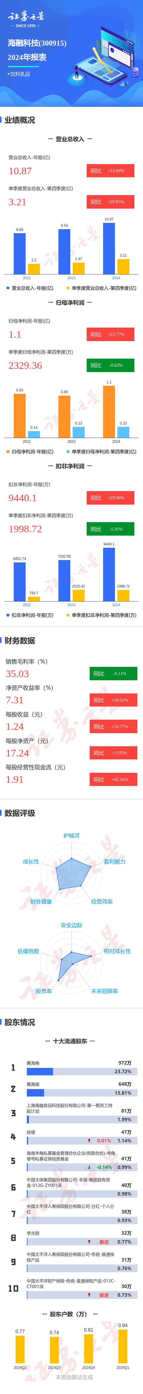 图解海融科技年报: 第四季度单季净利润同比减0.63%